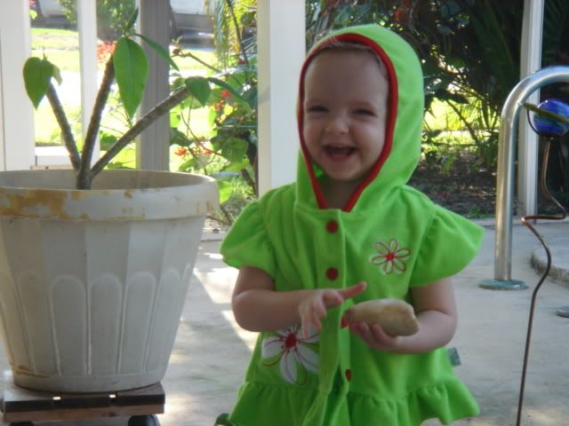 Here is Elizabeth after she got out of the pool, she is having a snack: