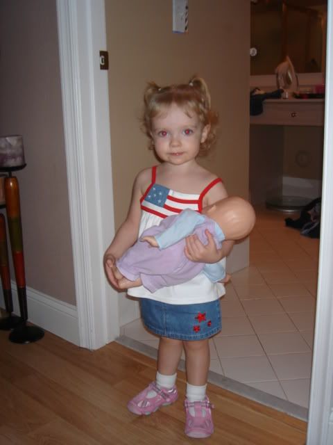 Here is Elizabeth right before we left the house. She is holding her April, who of course had to come to the party with us: